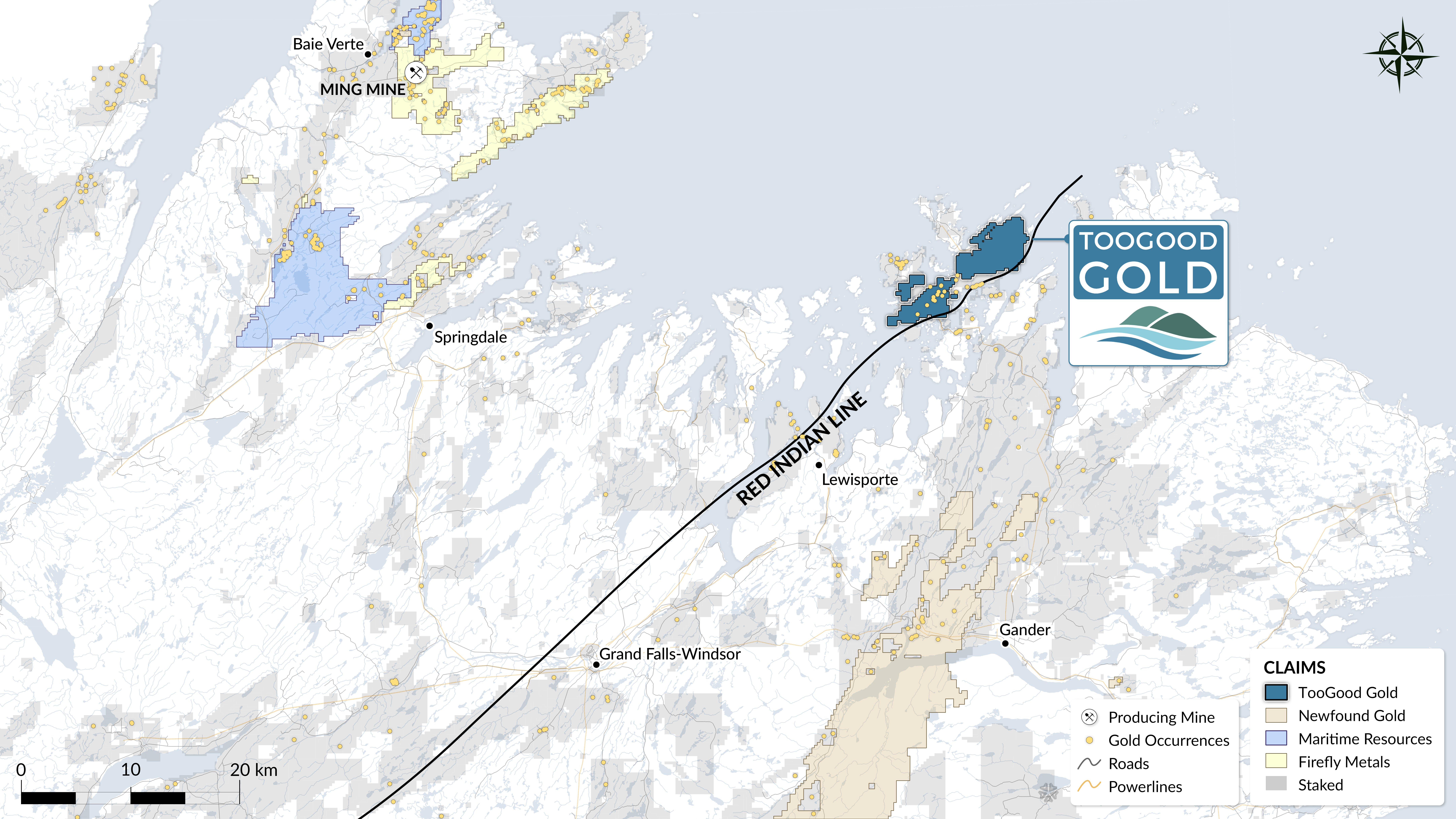 Queensway Project (New Found Gold) and 200 km northeast of Calibre’s Valentine Lake Gold Mine (~7.8 Moz Au reserves + resources1)